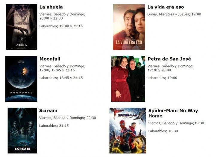 Además de las películas reflejadas en la cartelera, también se proyecta "Lunáticos", el viernes, sábado y domingo, a las 17:30 horas.