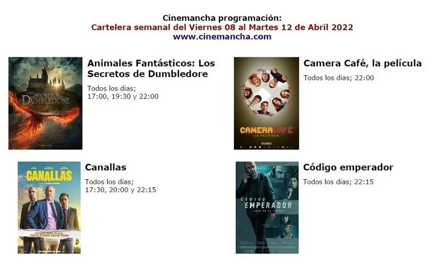 MULTICINES CINEMANCHA INFORMA: CON MOTIVO DE LAS VACACIONES DE SEMANA SANTA DESDE EL VIERNES 08 AL LUNES 18 DE ABRIL 2022 ABRIRÁ TODOS LOS DÍAS