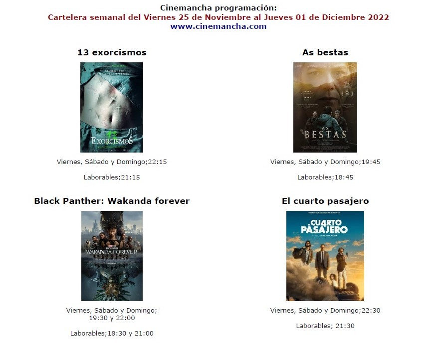 CARTELERA CINEMANCHA