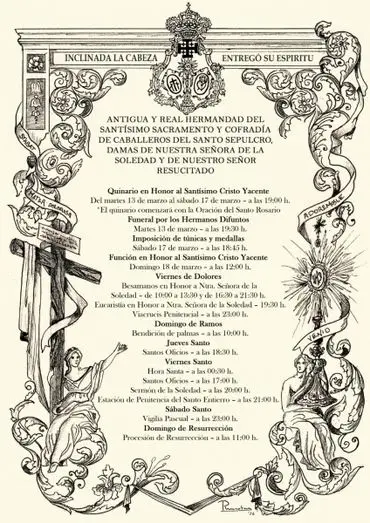 El Viernes Santo, a las 20:00 horas, dará comienzo el Sermón de Soledad, preparatorio de la Estación de Penitencia del Santo Entierro, que saldrá a las 21:00 horas.