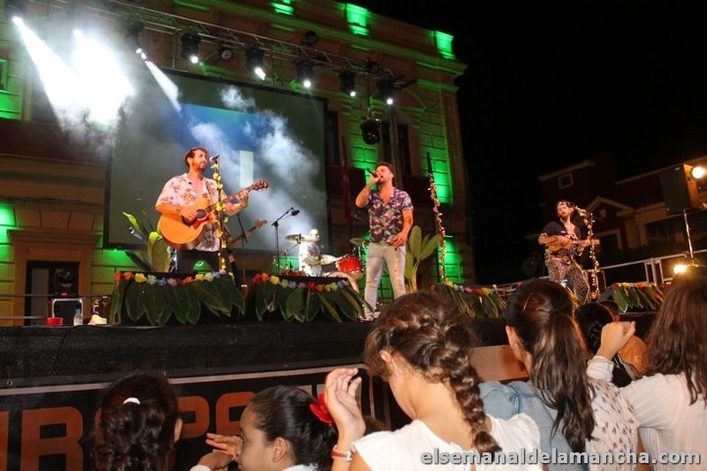 El grupo valenciano Bombai impregnó anoche la plaza de España de Alcázar de San Juan de su rollo, alegría e ilusión que transmiten sus canciones, y que dieron a conocer en un concierto organizado con motivo de la Fiesta de Vendimia de Onda Cero y el Consejo Regulador de la Denominación de Origen La Mancha.