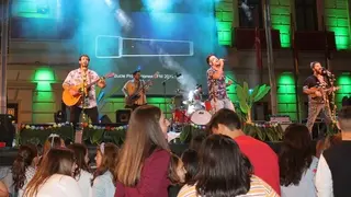 El grupo valenciano Bombai impregnó anoche la plaza de España de Alcázar de San Juan de su rollo, alegría e ilusión que transmiten sus canciones, y que dieron a conocer en un concierto organizado con motivo de la Fiesta de Vendimia de Onda Cero y el Consejo Regulador de la Denominación de Origen La Mancha.