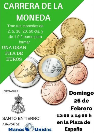 La Carrera de la Moneda se enmarca dentro de las actividades de la Campaña contra el Hambre de Manos Unidas, que este año lleva por lema EL MUNDO NO NECESITA MÁS COMIDA, NECESITA MÁS GENTE COMPROMETIDA. También este domingo se celebrarán dentro de la misma campaña las acciones “Comparte tu tarta” y “Compra vida para regalar vida”, en la misma Plaza de España.