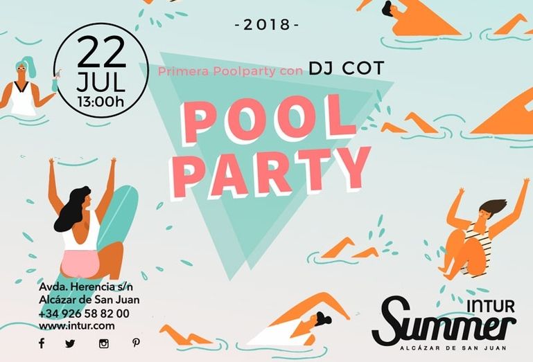La terraza 'Intur Summer' del hotel Intur Alcázar de San Juan sigue dando vida al verano y este domingo día 22 de julio celebrará su primera Pool Party del verano. Un evento que se contará con la animación de DJ Cot y en el que habrá todo lo necesario para refrescarse en la calurosa tarde de domingo.