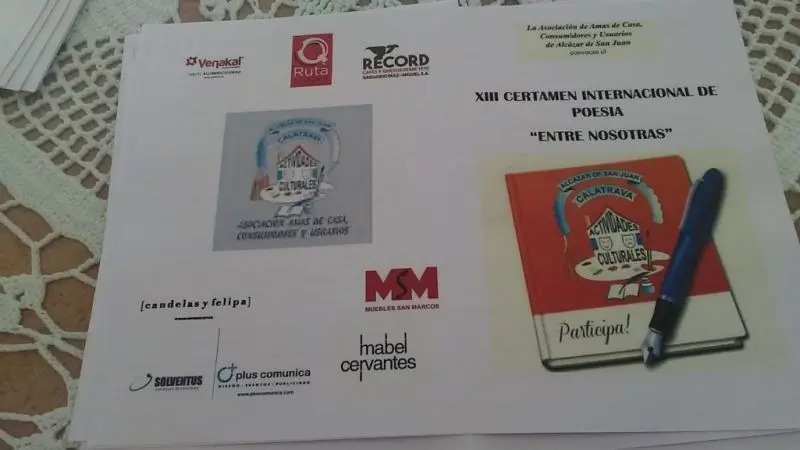 La Asociación de Amas de Casa, Consumidores y Usuarios Calatrava de Alcázar de San Juan procederá este viernes, día 15 de marzo, a las 18 horas y en el Salón Noble del Ayuntamiento de Alcázar, a la entrega de premios del Certamen Internacional de Poesía Entre Nosotr@s.