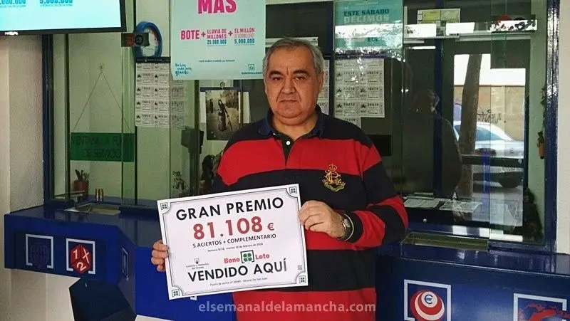 El sorteo de la bonoloto celebrado en la tarde-noche del martes día 20 de febrero ha dejado en Alcázar de San Juan un premio de segunda categoría (5 aciertos más el complementario) dotado con 81.108€.