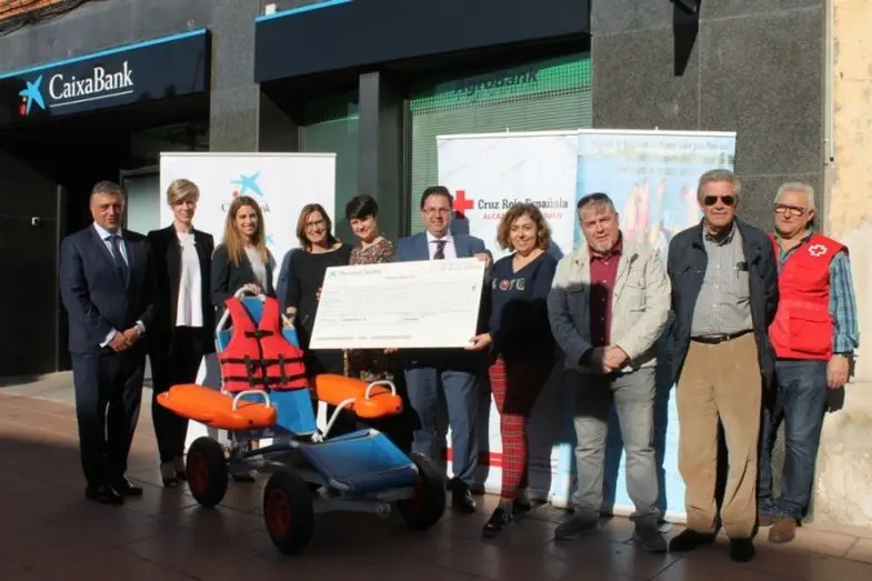 Cruz Roja Alcázar ha recogido este lunes, de manos de La Caixa, una Silla Anfibia a través de la Obra Social Descentralizada, tal como ha señalado el jefe de zona de La Caixa, Pedro Antonio Martínez Atalaya, quien ha estado acompañado en este acto por el director de la oficina de Alcázar, Juan Perea, y la presidenta de Cruz Roja Alcázar, Conchi Herrera.
