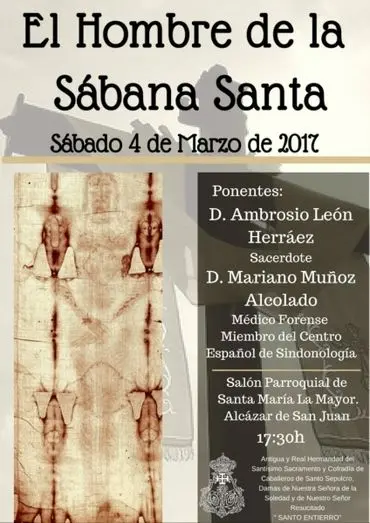 La Cofradía del Santo Entierro ha programado una importante Charla Formativa para el sábado 4 de marzo. Se titula el “Hombre de la Sábana Santa”, correrá a cargo del sacerdote Ambrosio León Herráez y el forense Mariano Muñoz Alcolado y se desarrollará en el salón parroquial de Santa María.