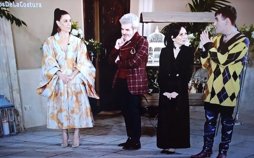 Raquel Sánchez Silva, que informó en el programa sobre la autoría de su atuendo justo antes de que los tres finalistas eligieran el modelo a confeccionar de los tres maestros de la costura, lució un conjunto formado por dos piezas exclusivas de la colección Kintsugi 2020 de “Candelas y Felipa”, confeccionadas con motivos florales. Según Román, el conjunto está formado por una chaqueta kimono con cuello esmoquin y talle modelado con pinzas y mangas de kimono al que se unió una falda inspirada en los pantalones tradicionales japoneses, con pliegues planchados, “un diseño que marca mucho la cintura”. La estilista de la presentadora eligió una pieza de cada diseño confeccionado por los alcazareños.