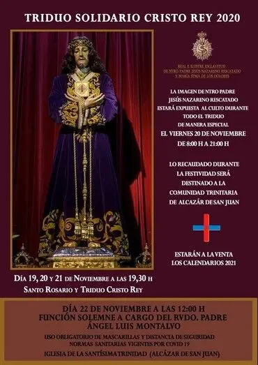 La Hermandad de Nuestro Padre Jesús Nazareno de Alcázar de San Juan ha organizado, para este fin de semana, diversos actos con motivo de la festividad de Cristo Rey.