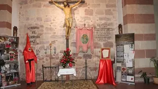 Los visitantes podrán ver en la exposición dos paneles, uno de ellos con la pequeña explicación de la historia y la reconciliación, una parte muy importante para el responsable de la exposición porque tal como ha explicado, “esta Hermandad nació como consecuencia de una terrible Guerra Civil, y anteriormente había unas lápidas y se conmemoraba la expiación de las almas víctimas del odio a la religión, pero afortunadamente hemos evolucionado mucho y actualmente se cambió hasta el nombre, se renovaron los estatutos y todo lo que pudiera haber de sesgo de otro tipo creo que con los dos paneles queda todo dicho, Cristo es nuestra paz y él ha hecho las paces para crear un solo hombre nuevo, el del amor y el del perdón”.