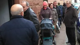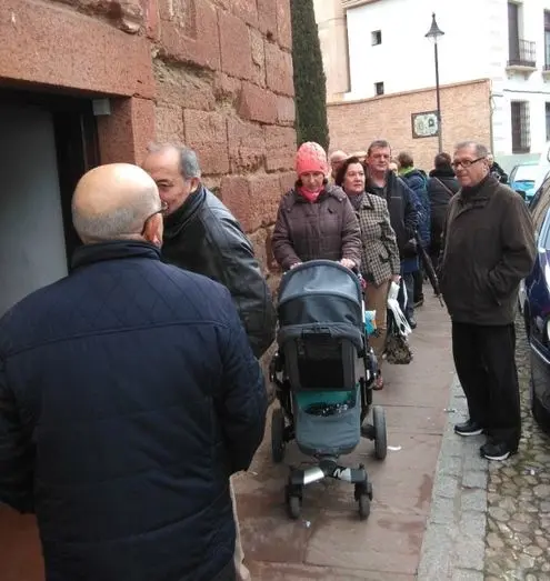 Numerosos vecinos han acudido esta mañana a la Parroquia de San Blas para comprar los rosquillos elaborados días atrás en el horno de Espinosa por un grupo de voluntarias de la Parroquia.