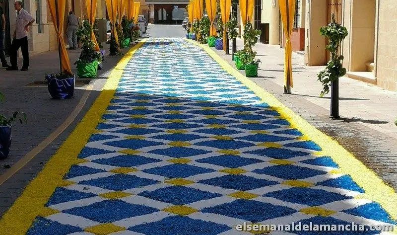 Las calles del centro de Alcázar de San Juan ya están engalanadas para recibir la procesión del Corpus Christi, que dará inicio tras la celebración de la función solemne que tendrá lugar en la Parroquia de Santa María La Mayor.