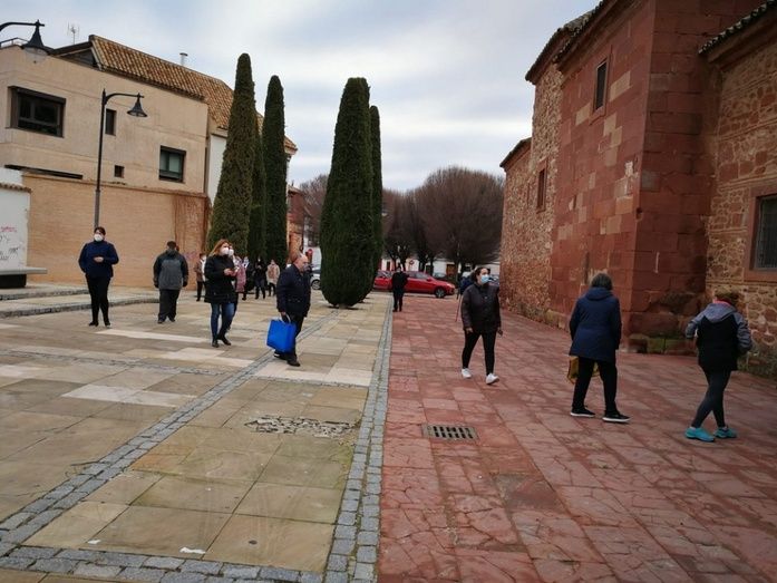 Los alcazareños guardan cola y distancia para comprar los tradicionales rosquillos de San Blas