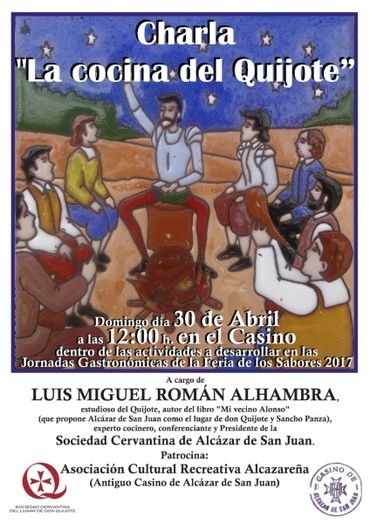 Dentro de amplia y diversa programación que el Ayuntamiento de Alcázar de San Juan ha elaborado con motivo de esta edición de la Feria de los Sabores, la Asociación Cultural Recreativa Alcazareña (antiguo Casino de Alcázar) patrocina una charla titulada “La Cocina del Quijote”, en la que se hará un recorrido por las conocidas recetas culinarias que se mencionan en la novela de Miguel de Cervantes e incluso se desmenuzarán los detalles de su elaboración.