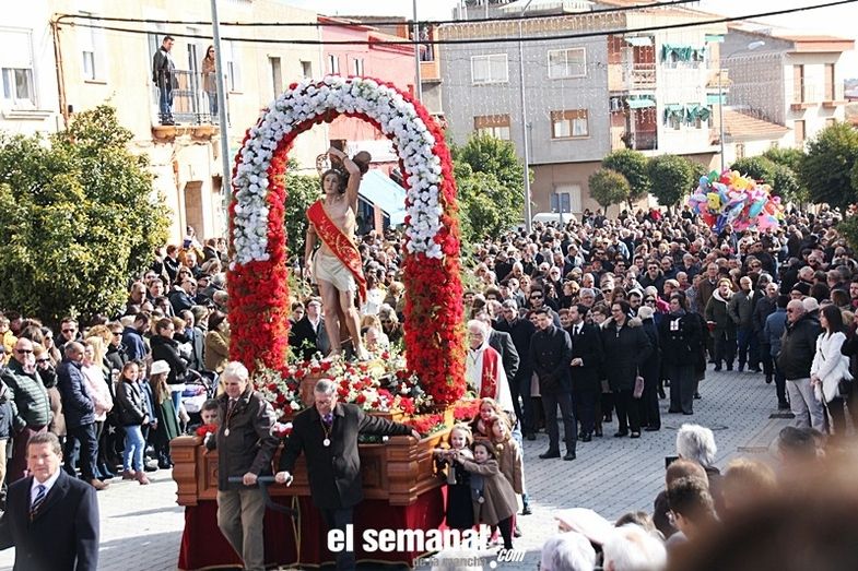 Cientos de vecinos han acompañado a San Sebastián en el día central de su festividad. A pesar del aviso de lluvia, el tiempo ha respetado durante la mañana y ha ayudado a que las calles de la localidad vuelvan a llenarse de gente en un día en el que los vecinos de Alcázar de San Juan aprovecha para disfrutar de la mañana del domingo con familiares y amigos.