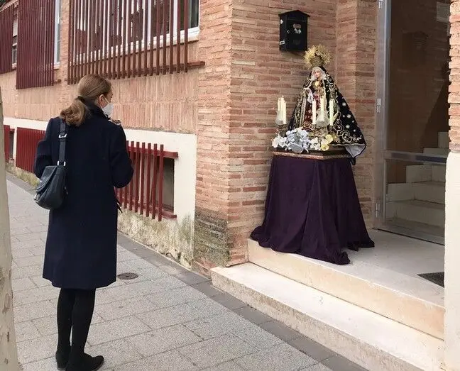 En este año 2021, cuando aún no se ha podido disfrutar de las hermandades en la calle, un grupo de vecinos de la calle Bachiller Sansón Carrasco, del barrio del parque Cervantes de Alcázar de San Juan, ha querido poner música, color y ambiente cofrade a la mañana del Viernes Santo.