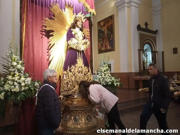 Numerosos devotos de Nuestro Padre Jesús Nazareno han pasado ya por la iglesia de la Trinidad de Alcázar de San Juan para besar el pie a la imagen de Jesús, en el tradicional Besapiés que todos los años organiza su Hermandad en el primer viernes de marzo.