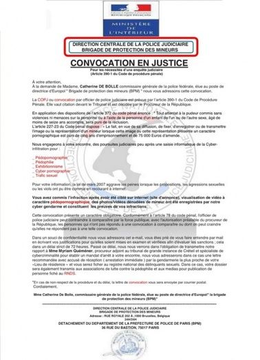 Dicho mensaje contiene un escrito en francés donde se comunica a aquella persona que lo recibe que ha cometido una infracción al acceder a distintas páginas web de contenido sexual, concretamente a algunas de carácter pedófilo con pornografía infantil. Para no ser supuestamente denunciado con una multa de 75.000 euros, los perjudicados deben ponerse en contacto en un plazo de 72 horas con el correo electrónico y el contacto que facilitan, momento en el cual buscan estafar al ciudadano con envíos de dinero.