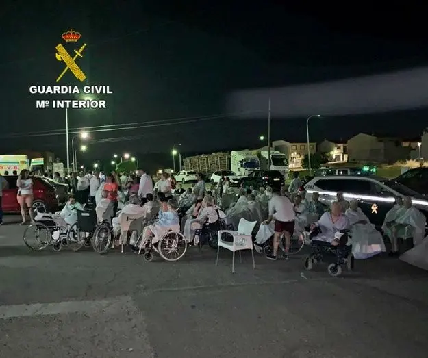 Al lugar del incendio llegó una patrulla del puesto de Oropesa, que observó la cercanía de las llamas a las ventanas de las habitaciones donde estaban alojados los ancianos y junto con los trabajadores de la residencia se apresuraron a evacuar a todos los ancianos que se encontraban en ese momento durmiendo.