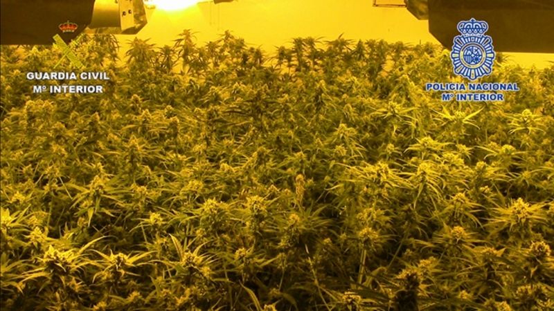 Agentes de la Guardia Civil y la Policía Nacional, en una operación conjunta, han detenido a 14 personas integrantes de un grupo criminal especializado en cultivos interiores de marihuana. Estas personas han sido imputadas por los delitos de elaboración y tráfico de estupefacientes y defraudación de fluido eléctrico. Se han realizado 10 registros simultáneos en 6 localidades de Toledo y 3 en Madrid, donde se han desmantelado 6 laboratorios indoor de marihuana y se han intervenido 12.964 plantas, 230 kilos preparados para la venta, 56.400 € y 3 vehículos de lujo.