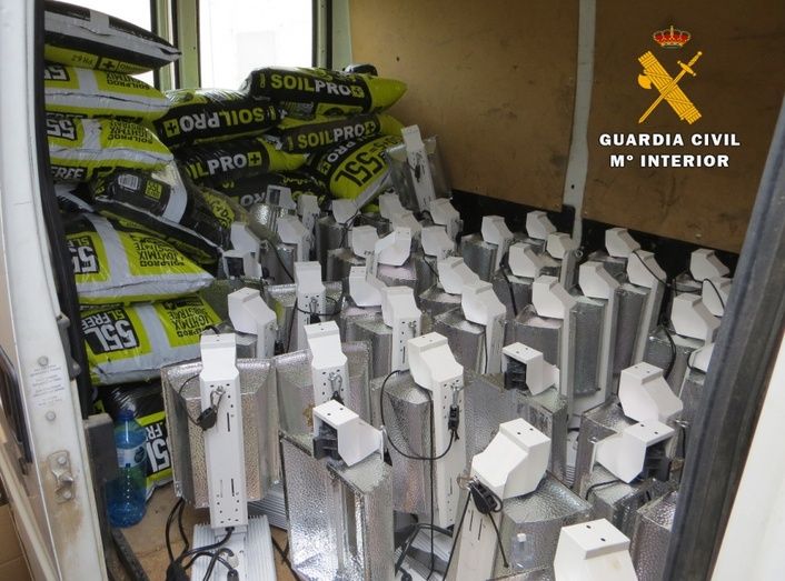 Tras la detención de estas personas, la incautación de la sustancia vegetal y con las pruebas recabadas con anterioridad, la Guardia Civil realizó un registro en el lugar donde se encontraría el centro de cultivo indoor, donde se incautaron los siguientes efectos: