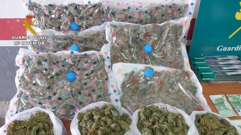 La Guardia Civil halló dos plantaciones intensivas de marihuana donde incautó en entre las dos viviendas, 624 plantas de marihuana y 17,700 kg de cogollos de esta sustancia dispuestos para su venta, documentación relacionada por el ilícito penal, básculas para el pesaje y otros efectos utilizados para la elaboración y distribución de la sustancia incautada.