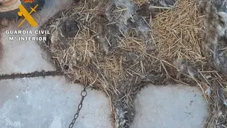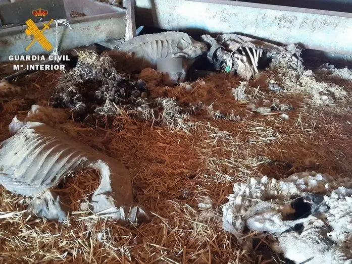 Personada la patrulla de la Benemérita en dicho lugar, se pudo observar desde el exterior de la explotación los cadáveres dispersos de 9 ovejas, junto a otros 23 animales vivos en malas condiciones higiénico-sanitarias. Una vez fue localizado el dueño, y en su presencia, se realizó una inspección del interior de la nave agrícola y alrededores, encontrando 280 cadáveres de ovejas repartidos por el suelo, así como lo que parecía ser el cadáver de un perro de gran tamaño, en avanzado estado de descomposición, el cual se encontraba atado con una cadena a una viga.