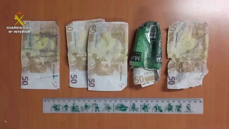 Efectivos del Cuerpo realizaron un cacheo superficial del sospechoso, comprobando que, además del billete con el que intentó pagar, llevaba escondidos otros 10 billetes de 50 euros.