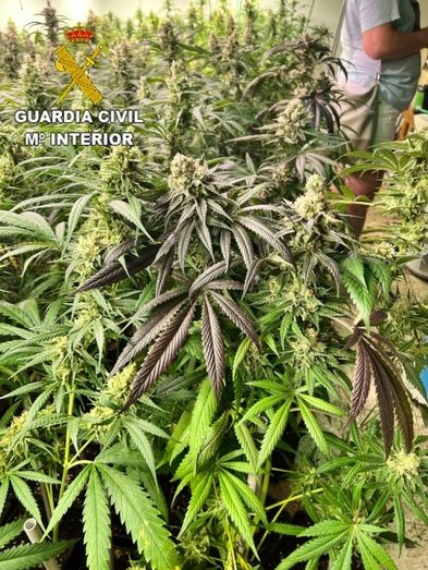 La Guardia Civil ha desarticulado una plantación de 460 plantas de marihuana, así como ha intervenido todos los útiles para su cultivo y ha detenido a un varón por los delitos de cultivo y elaboración de drogas y defraudación de fluido eléctrico.