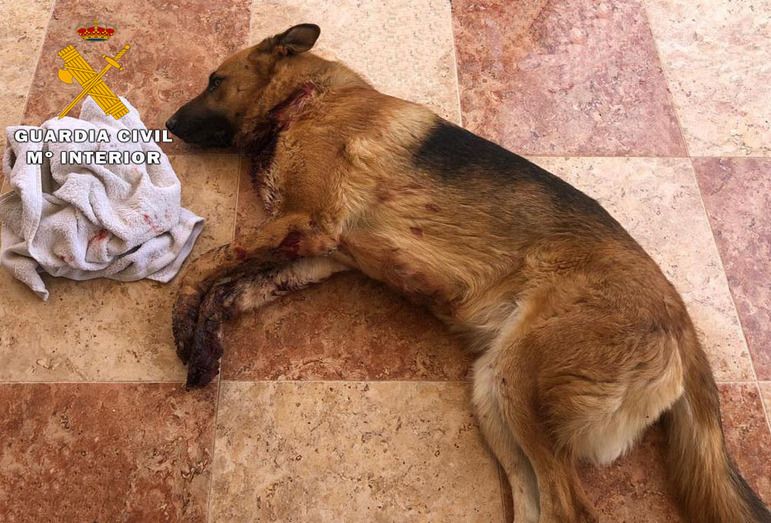 Al no acceder a sus peticiones, los autores se personaron en la localidad de residencia de la víctima, y utilizando un arma blanca, provocaron a su perro unas lesiones de carácter muy grave en el cuello, salvando su vida gracias a que un vecino lo vio sangrando y lo llevó a una clínica veterinaria de su localidad.