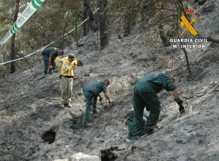 Posteriormente, efectivos del Equipo de Protección de la Naturaleza (EPRONA) de la Guardia Civil de Albacete comenzaron las investigaciones para tratar de conocer la procedencia de las evidencias recogidas en la inspección ocular que, unidas a los análisis realizados en el laboratorio del Servicio de Criminalística de la Guardia Civil, dieron como resultado la detención de dos personas como presuntas autoras del incendio.