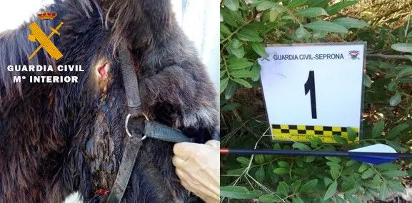 Efectivos del Servicio de Protección de la Naturaleza (SEPRONA) de la Guardia Civil de Almansa han investigado a un menor de edad como presunto autor de un delito de maltrato animal, ocasionando heridas sobre dos asnos, mediante el disparo de flechas con un arco, resultando uno de ellos herido y el otro muerto.