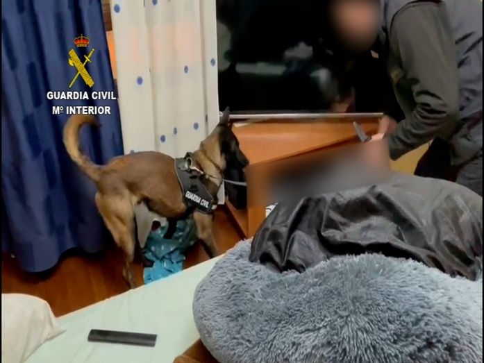 Una vez verificados todos los datos obtenidos durante esta investigación, la Guardia Civil solicitó a la Autoridad Judicial correspondiente una autorización de entrada y registro para su domicilio, el cual se llevó a cabo con la colaboración del Servicio Cinológico con un perro detector de estupefaciente y la Unidad USECIC de la Comandancia.