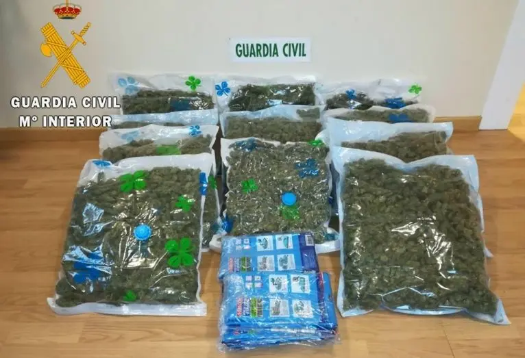 La Guardia Civil identificó a su conductor y único ocupante, un hombre de origen asiático de 29 años, al que se le realizó un registro superficial encontrando 667 €. En el registro del vehículo los agentes hallaron tres paquetes con bolsas de cierre hermético de las mismas características de las utilizadas para envasar la marihuana.