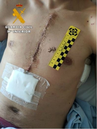 Una vez allí, los agentes hallaron a un hombre que sangraba abundantemente por un corte profundo en el pecho y en los antebrazos producidos por arma blanca. Los servicios sanitarios lo evacuaron de urgencia al Hospital Virgen de la Salud de Toledo donde tuvo que ser intervenido quirúrgicamente y donde permaneció 8 días ingresado en la UCI.