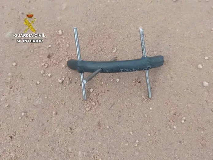 También esta semana, una patrulla del Puesto de la Guardia Civil de Calera y Chozas intervino una docena de artefactos de construcción manual con puntas metálicas que estaban colocados en los accesos a una fábrica de esa localidad que podrían ser usados para dañar los neumáticos de los vehículos que utilizasen esa vía.