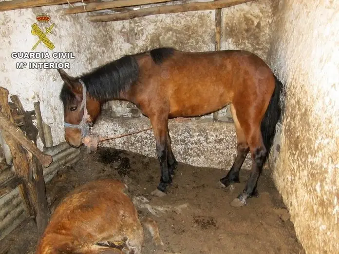 Tras las primeras gestiones y como resultado de la inspección realizada, se comprobó que en el interior de la vivienda había varias estancias habilitadas como cuadras para caballos. Además, los agentes localizaron cuatro cadáveres de equinos en diferentes estados de descomposición y otro équido vivo en condiciones evidentes de malnutrición, con una presencia masiva de insectos y roedores.
