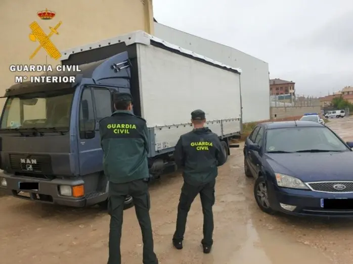 La Guardia Civil detuvo a estos hombres por dos delitos de robo con fuerza en las cosas e intervino el camión donde estaban introduciendo el género y un turismo que habían utilizado los delincuentes para cometer estos delitos.