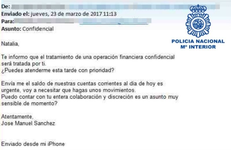 La Policía Nacional difunde una serie de pautas seguras para evitar ser víctima de una estafa, conocida como el fraude del CEO, que está afectando a numerosas empresas en nuestro país y que consiste en suplantar la identidad de altos directivos para lograr que otros empleados realicen transacciones de dinero a los delincuentes. El objetivo de esta acción de comunicación de la Policía es difundir unas pautas de seguridad para las empresas y sus empleados con la finalidad de evitar que sean víctimas de estas estafas. La cautela, el sistema de verificación en dos pasos, la actualización del software y la información son las principales reglas para evitar transferencias fraudulentas.