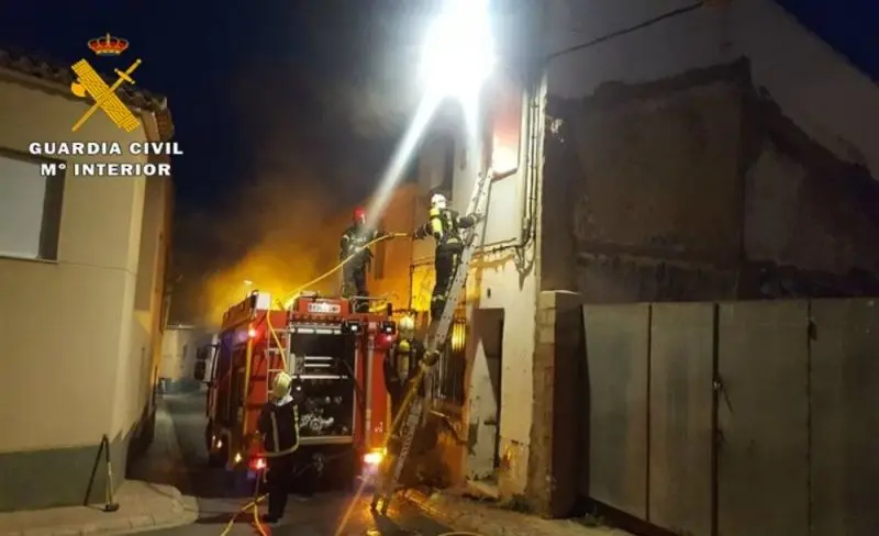Efectivos de la Guardia Civil han rescatado a una mujer de 91 años de edad, vecina de Caudete, tras el incendio de una vivienda colindante a su domicilio.