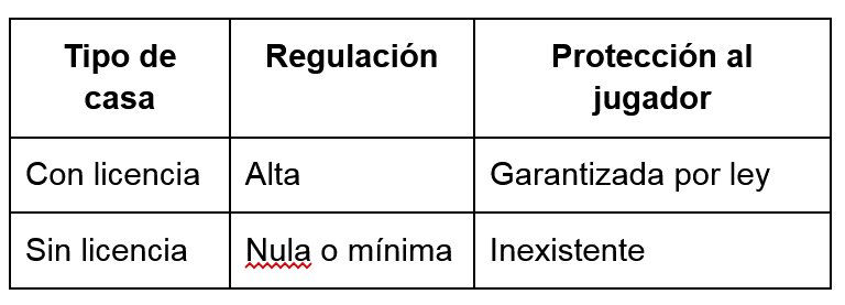 Las casas sin licencia, en cambio, funcionan fuera de ese sistema. No están obligadas a cumplir normas de transparencia, protección de fondos ni juego responsable.