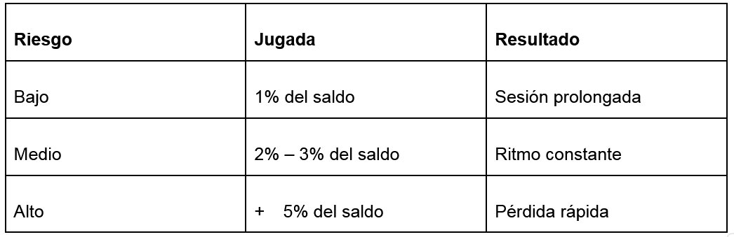 Ajustar el tamaño de las jugadas es el paso definitivo para no vaciar el depósito rápidamente. Realizar apuestas grandes es, sin duda, la ruta más corta para perder el control y comprometer el dinero real. Un enfoque paciente permite que el saldo extra trabaje realmente como una barrera de seguridad. La relación entre el riesgo y la estabilidad se visualiza de la siguiente forma: