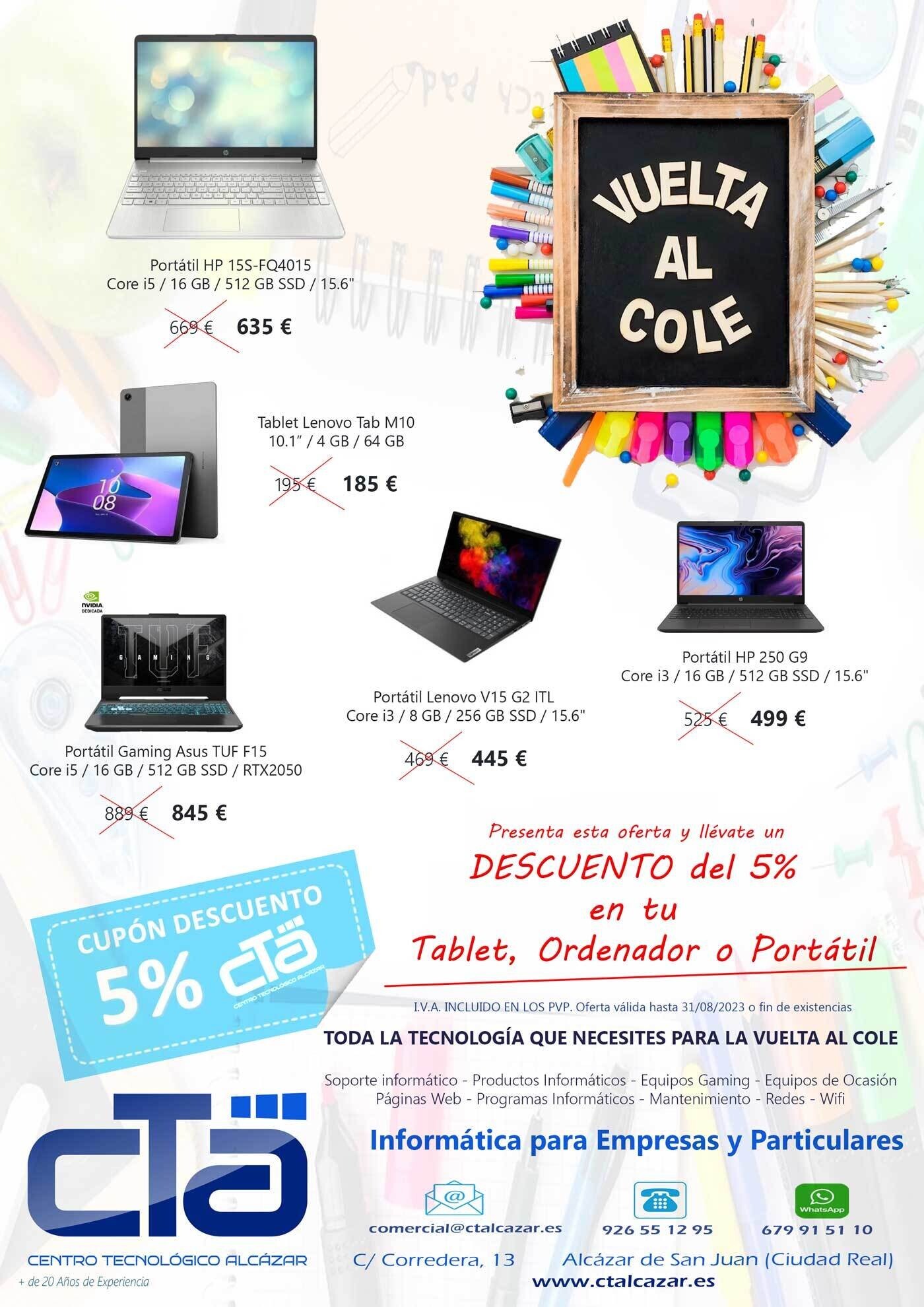 En CTA tienen toda la tecnología necesaria en la "Vuelta al cole". Además, desde CTA ofrecen Ordenadores, Portátiles, Consumibles, Hardware, Software, Mantenimiento, Páginas Web ...