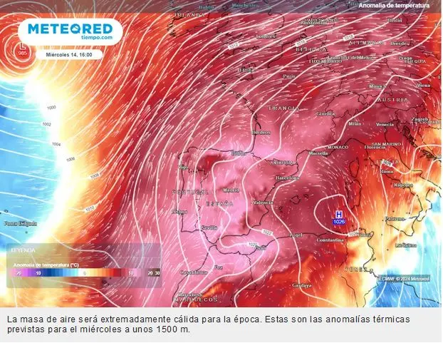 Según las previsiones de Samuel Biener, de Meteored, después del tiempo invernal de los carnavales, se espera que en las próximas jornadas vuelva una dorsal subtropical que llevará en su seno una masa de aire anormalmente cálida para la época, lo que provocará un ascenso térmico acusado y generalizado. Si bien es cierto que será más móvil que en el último episodio y varios frentes conseguirán penetrar por este escudo.