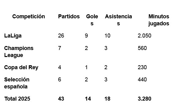 Estadísticas de Lamine Yamal en la temporada 2025