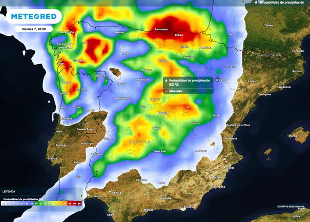 Las temperaturas bajarán en la mitad norte peninsular y en Baleares, con heladas en los sistemas montañosos, donde se podrán producir precipitaciones en forma de nieve. Habrá pocos cambios en Canarias. Predominarán los vientos de poniente excepto en Canarias, donde soplarán los alisios de moderados a fuertes.