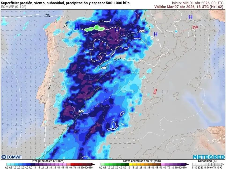 Ya poniendo el foco en las precipitaciones, estas se podrían producir a partir del martes de la semana que viene, barriendo de oeste a este la España peninsular, dejando lluvias casi generalizadas hasta el jueves en gran parte del territorio. Además, se producirían tormentas. No obstante, cabrá seguir analizando las futuras salidas de los modelos, para detallar más la evolución de este episodio.