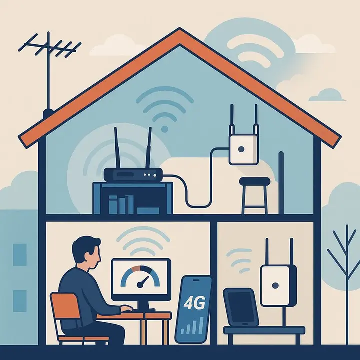 Los repetidores o amplificadores de señal 4G pueden ayudar a mejorar la cobertura y la estabilidad de la señal, además de aumentar la velocidad de internet, reducir la latencia y ampliar la cobertura en interiores.