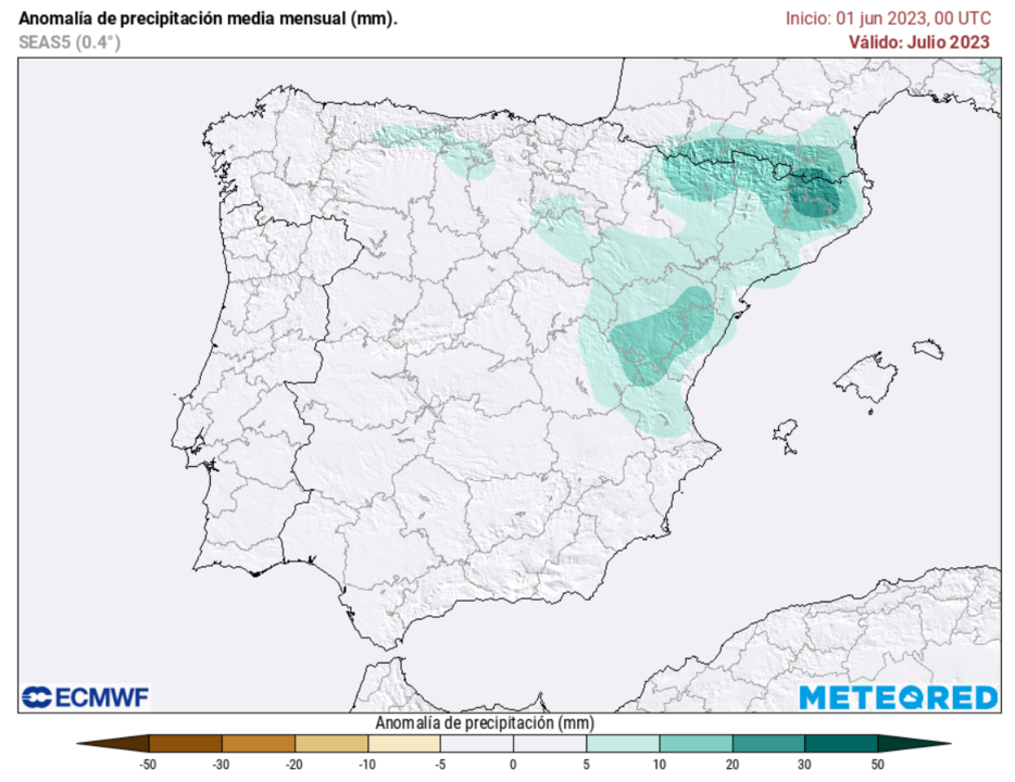 Para este año, en la mayor parte de España se espera un mes de julio muy cálido, pero sin rebasar los extremos del 2022. En la vertiente cantábrica, valle del Ebro, depresión del Guadalquivir, la mayor parte de las mesetas y los dos archipiélagos, las temperaturas superarán 1 o 2 ºC la media.
